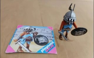 Figura de Playmobil de un gladiador romano, referencia 4653. - Incluye casco plateado. - Armadura y falda de cuero. - Escudo redondo negro. - Espada corta. Opción de agrupar anuncios y de realizar envíos ordinarios por Correos