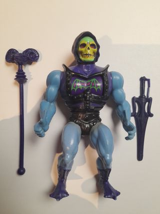 Figura vintage de Skeletor con armadura de batalla. - Incluye bastón con cabeza de carnero. - Incluye espada. - Diseño clásico de Masters del Universo. El barril funciona muy bien, despues de tantos años. Ver fotos. Masters del Universo Maitres de l'univers Masters of the Universe Mattel