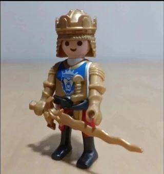 Figura de Playmobil del Rey de la Orden del León. - Corona y armadura doradas. - Chaleco azul con emblema de león. - Espada dorada detallada. Opción de agrupar anuncios y de realizar envíos ordinarios por Correos