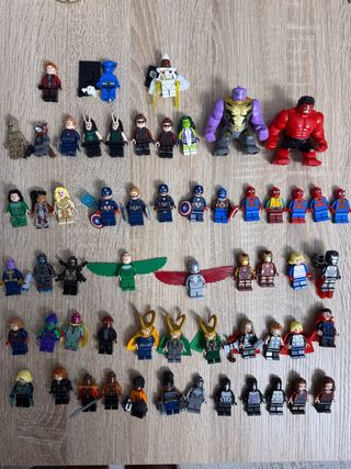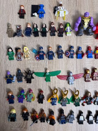 Colección de figuras de Lego de Marvel originales. Personajes variados del universo Marvel. Elije los que quieras y negociamos el precio. Thanos, Hulk Rojo, Agatha Harkness, Beast, Capitana Carter, Capitán América (Sam Wilson), Echo, Gamora con la Espada de Thanos, Goliath, Hawkeye, Kate Bishop, Loki, Monica Rambeau, Moon Knight, Mr. Knight, She-Hulk, Soldado de Invierno, Storm, Sylvie, T’Challa Star-Lord, The Werewolf, Visión, Bruja Escarlata, Wolverine, Ancient One, Ant-Man (Scott Lang), Black Widow (Natasha Romanoff), Capitana Marvel (Carol Danvers), Capitán América (Steve Rogers), Doctor Strange, Falcon, Groot, Hela, Iron Man,