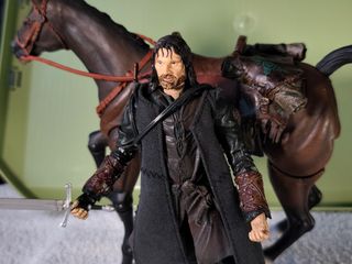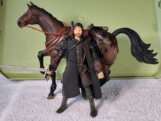 Figura de acción de Aragorn con su caballo Brego, de la marca ToyBiz. Pelicula: El Señor de los Anillos: Las Dos Torres. - Contiene todos los accesorios menos la capa élfica La espada está reparada con pegamento extrafuerte. 🔥👁️🔥 Más figuras de ESDLA/LOTR en mi perfil Modelo: Aragorn & Brego - Two Towers (2002-2004): Deluxe Horse & Rider Sets