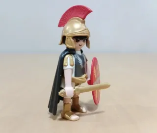 Figura de Playmobil de un guerrero con armadura y casco dorados. - Incluye escudo y espada. - Detalle de plumas rojas en el casco. Opción de agrupar anuncios y de realizar envíos ordinarios por Correos