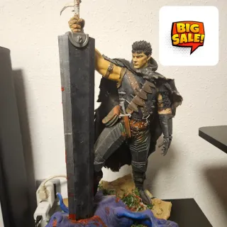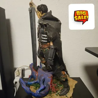 Figura coleccionable del personaje Guts de Berserk. - Detallado diseño del guerrero. - Incluye la icónica espada. - Base temática con elementos del campo de batalla. Pintado a mano. 55 cm de alto 28 de base