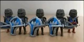 Conjunto de cinco figuras de Playmobil representando guerreros medievales. Cada figura viene con su escudo y espada. - Cinco figuras de guerreros. - Escudos con diseño medieval. - Espadas incluidas. Opción de agrupar anuncios y de realizar envíos ordinarios por Correos