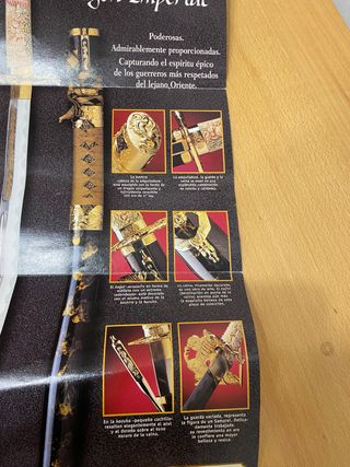 Preciosa espada decorativa de colección, ideal para entusiastas de la historia o decoración medieval. Se encuentra en perfecto estado. - Espada con diseño medieval. - Empuñadura detallada. - Incluye estuche original.
