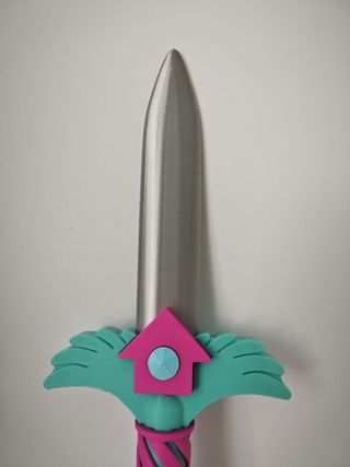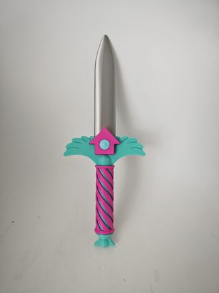 Espada de juguete inspirada en el juego del calamar, creada con impresión 3D. Es una pieza única y llamativa. - Fabricada con plástico resistente. - Diseño detallado y colorido. - Acabado brillante. - 25 cm de altura