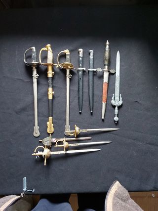 Sables, bayonetas y espadas a escala. Tal como se ve. Abstenerse ofertas. Solo envío por GLS. No SEUR NI correos. No separo el lote.