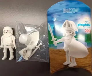 Figura de Playmobil del caballero blanco y su caballo blanco. Nuevo con su caja original Exclusivo para coleccionistas Se pueden vender juntos o por separado. Mirar precio de cada uno: - Caballero con armadura completa. 135€ - Incluye espada, casco y escudo en su bolsa cerrada - Caballo blanco. 15€