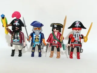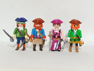 Conjunto de 4 figuras de Playmobil con temática pirata. Puedes comprar solo uno, escríbeme un mensaje y comentamos. - Figuras con sombreros de época. - Incluyen espadas y pistolas. - Ropa de estilo pirata. En mi perfil más artículos playmobil, medieval, oeste, indios, caballeros, vikingos, soldados, pesebre, Belén, caganer, accesorios playmobil. Se hace envío ordinario Por wallapop o inpost. Posibilidad de recogida en zona.