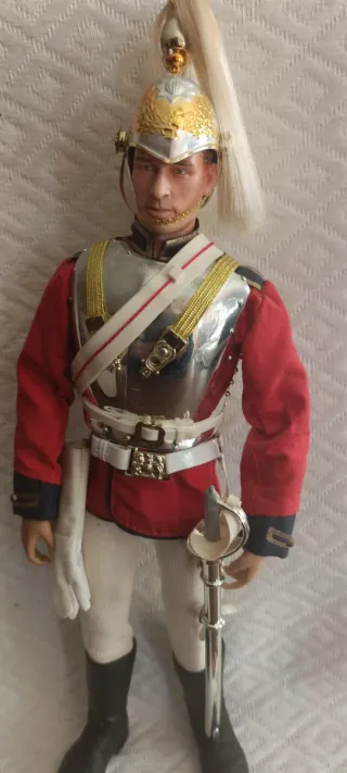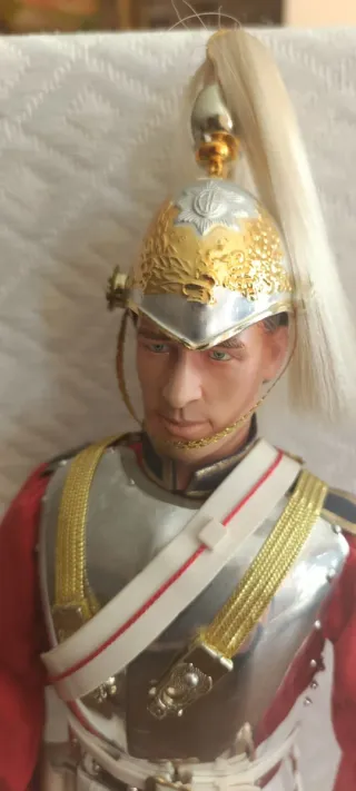 Figura de acción a escala 1/6 de un guardia de caballería inglés. Detallada vestimenta y armadura. Destacar pequeñas marchitas parte baja botas fácil de quitar ( ver última fotografia) Figuras acción. Did. Dragon . No hot toys - Escala 1/6. - Uniforme de guardia de caballería inglés. - Incluye espada. Guantes - Casco con penacho y accesorios que se ven en imagenes