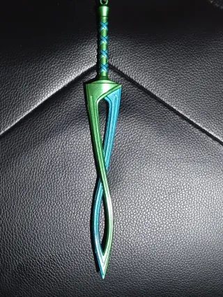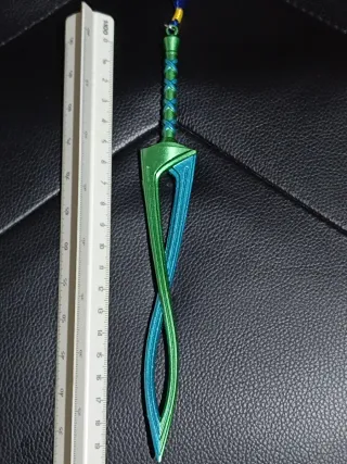Réplica de la Espada Majora Máscara Deidad. Un diseño único con acabados en verde y azul. - Diseño inspirado en la Espada Majora. - Colores: verde y azul. - Cadena para colgar. #nintendo #zelda #nintendoswitch