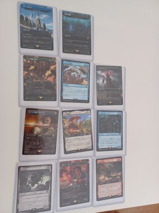 Vendo este magnífico lote de cartas magic del señor de los anillos en japones que me salió en una collector booster. Minamo , escuela al borde del agua.VENDIDA Urborg, la tumba de yawmotth, VENDIDA Marcha Ent, vendida VENDIDA El tio, VENDIDA Barr-dur, VENDIDA Dragon Atesorador, VENDIDA Espada morada y hogar, VENDIDA Mediana, exultsnte, VENDIDA Incluyo caja original y sobres. Como se aprecia las cartas de más valor la enfundado en top loader. Luego esta lote de raras y míticas que es el segundo que más vale. Y después la infrecuentes y comunes. No se aprecia en las fotos pero más de laa mitad del lote es foil, incluidas r
