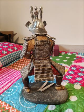 Guerrero samurái de unos 40 cm de alto, tiene partida la espada