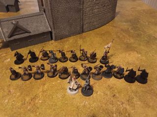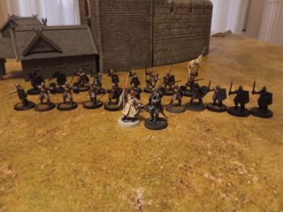 12 Guerreros con escudo y espada(faltan 3espadas) 8 Guerreros con escudo y lanza 1 Portaestandarte 1 Gandalf el blanco 1 Aragorn Middle earth,el señor de los anillos,el hobbit. Usado,separo,escucho ofertas.