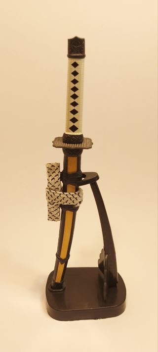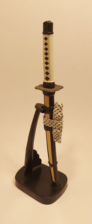 Espada Katana Samurai japonesa en miniatura con soporte. Pieza muy detallada. Hoja de acero inoxidable.