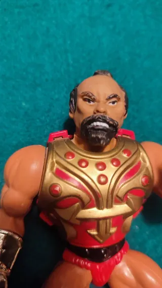 Vendo figura original Masters of the Universe (MOTU) del personaje Jitsu, fabricada por Mattel Spain en 1983. Pieza vintage auténtica, muy apreciada dentro de la línea clásica. Estado de conservación: Brazo dorado en perfecto estado, con buen color y sin desgaste apreciable. Coraza original en muy buen estado, bien conservada. Giro de cintura correcto y funcional, mantiene bien la posición. Plástico general bien conservado para su antigüedad. Accesorios: No conserva la espada, se vende tal como aparece en las fotos. Figura original Mattel Spain (no repro ni reedición), procedente de colección particular.