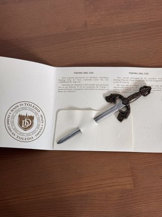 Comprada en Toledo y hecha en Toledo. Replica de la espada Tizona del Cid tamaño abrecartas