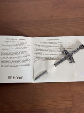 Comprada en Toledo y hecha en Toledo. Replica de la Espada de los Templarios tamaño abrecartas