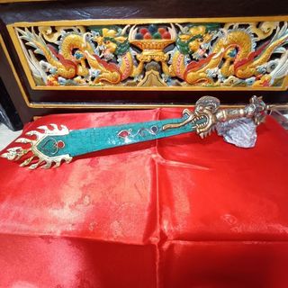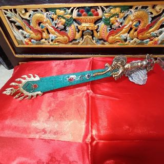 original y preciosa espada de buda Manjusry de un tamaño de 41cm y acabada en mosaico de turquesa por una cara y mosaico coral por la otra, acompañado de otras piedras preciosas... pieza original de Nepal....realizada en bronce y acabada en mosaico de piedra. buda tibetano Tíbet monje lama hindú India budismo Manjusry mantra yoga protección