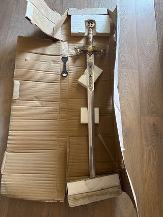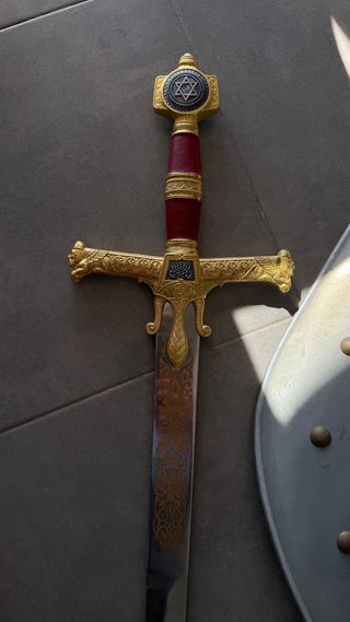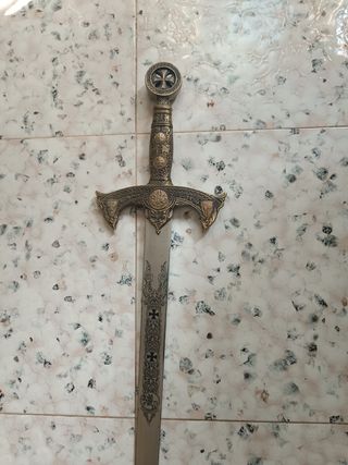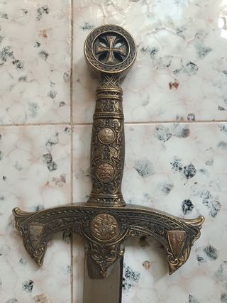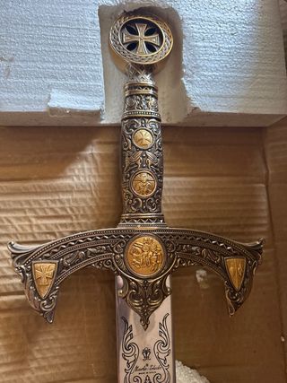 Espada decorativa de los Templarios, ideal para coleccionistas. Es una pieza única con detalles cuidados. - Elaborada con metales de gran calidad. - Diseño antiguo con detalles intrincados. - Perfecta para decorar cualquier espacio.