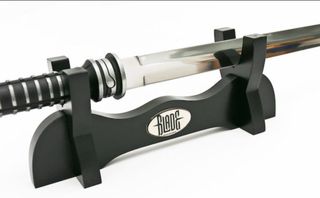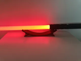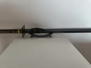 Soporte de mesa para exhibir una katana o cualquier otra espada o similar, como sables láser, etc. Su diseño permite colocar la espada de forma segura y elegante. Diseño sutil. Impreso en 3D. - Color a elegir. - Material resistente.