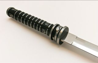 espada original figura del anime Claymore. Un accesorio detallado para coleccionistas. - Diseño plateado y negro. - Empuñadura con detalles. - Hoja afilada.