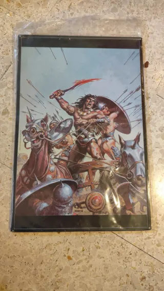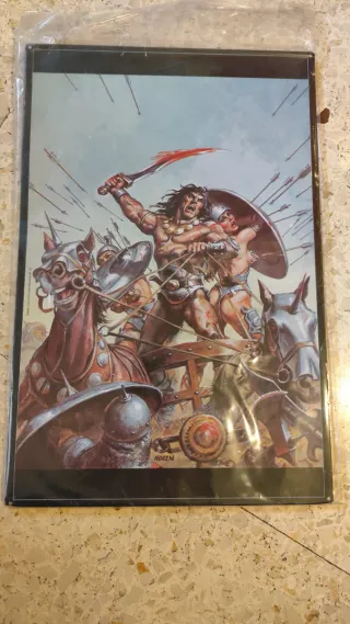 Lámina metálica original de Conan – La Espada Salvaje, nueva, en su plástico. Ilustración estilo Norem, difícil de encontrar en este estado. Está sin usar, sin óxido y perfectamente conservada. Incluye etiqueta original en la parte trasera. Ideal para decoración o coleccionistas. 📦 Envío seguro 💰 Precio: 20€