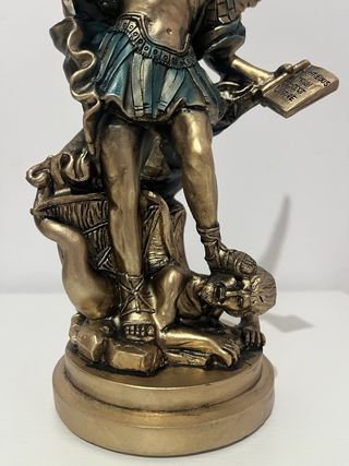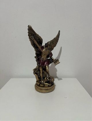 Figura decorativa del Arcángel San Miguel, representando la lucha contra el mal. - 29 cm de alto. - Detallado diseño con alas. - Sostiene una espada y un libro. - Figura pisando el demonio - Base circular dorada. Kira Bali hace envíos a toda España...más artesanía y decoración en mi perfil...