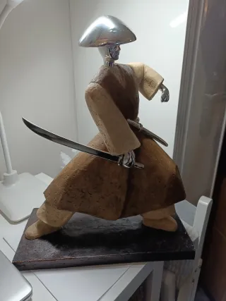 Figura decorativa de un guerrero samurái con su espada. - Diseño detallado. - Acabado color metálico y texturizado.