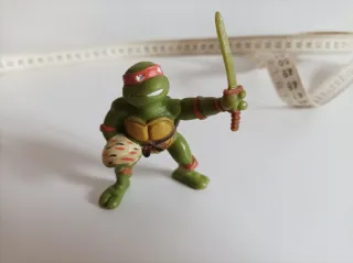 Figura de PVC de Michelangelo de las Tortugas Ninja (Teenage Mutant Ninja Turtles). Lleva una pizza en una mano y una espada en la otra, no los nunchakus característicos de la tortuga con el antifaz naranja. Ideal para coleccionistas. Buen estado, ver signos de desgaste en fotos Preguntar por descuentos por lotes