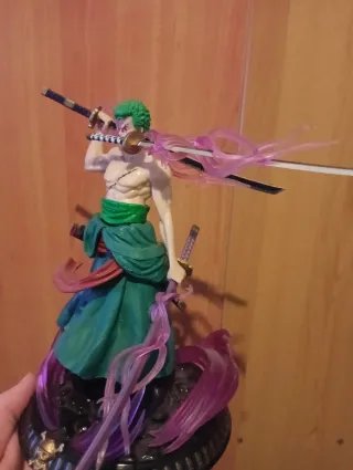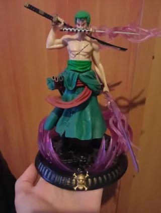 Figura de Zoro de One Piece, ideal para coleccionistas. - Figura de acción detallada. - Base temática con efectos de energía. - Incluye tres espadas.