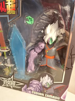 Figuras de acción de Dragon Ball Super de la serie Dragon Stars. Incluye a Super Saiyan Future Trunks y Fusion Zamasu. BANDAI - Figura de Super Saiyan Future Trunks con espada y manos intercambiables. - Figura de Fusion Zamasu. - Accesorios incluidos.
