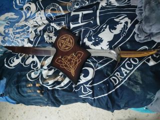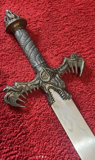 Réplica de espada inspirada en Conan el Bárbaro. Un diseño imponente con detalles elaborados. - Empuñadura con diseño tribal. - Guarda con motivos de dragón o bestia. - Hoja metálica de gran tamaño, con un pequeño puñal incrustado en la empuñadura . Con una longitud de 125 cms, esta espada es ideal tanto para coleccionistas como para aquellos que buscan una pieza ornamental y decorativa. Su diseño único y detallado la convierte en una pieza de arte que no pasará desapercibida en cualquier espacio. Pero no solo es su apariencia lo que la hace especial, sino también su calidad. El acero inoxidable utilizado en la hoja