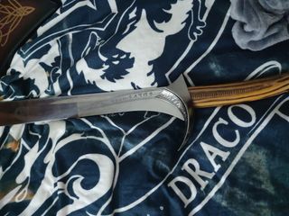 Réplica de la espada Orcrist, inspirada en la fantasía. - Hoja de metal con grabados élficos. - Empuñadura de madera con detalles. - Incluye funda de cuero decorada.