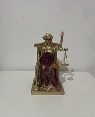 Figura decorativa de la Diosa de la Justicia, también conocida como Temis. Representa la imparcialidad y la equidad. - Tiene 18 cm de alto. - Tiene Acabado en dorado con detalles en color burdeos. - Sostiene una balanza y una espada. - Sentada en un trono. - Kira Bali hace envíos a toda España...más artesanía y decoración en mi perfil...
