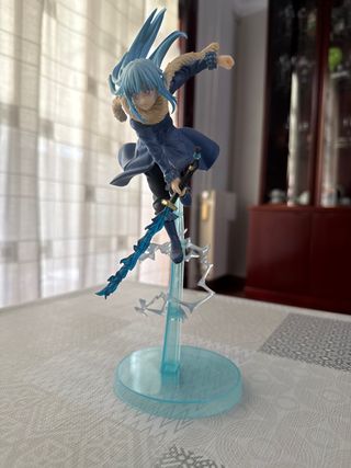 Figura de Rimuru Tempest, personaje de anime. - Diseño dinámico con espada. - Base de soporte azul translúcido.