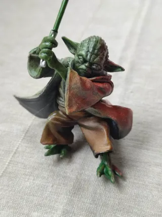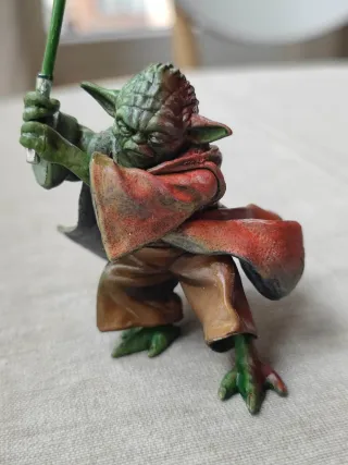 Figura detallada de Yoda, personaje de Star Wars. Pintada a mano. - Pintura acrílica y barnizada. - Figura de plástico ABS. - 7 cm de alto sin contar la espada de luz. Puede comprarse en conjunto la de Darth Vader que anuncio para montar una escena de combate (los colores encajan la una con la otra). Escucho ofertas. Se hacen envíos.