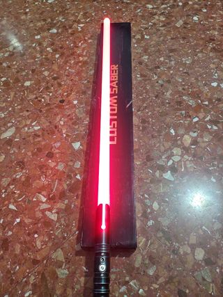 Réplica de la espada de Kylo Ren con su icónica empuñadura cruzada y una máscara. - Hoja de luz roja y sonido - Empuñadura negra con detalles. - Incluye máscara con distorsión de voz
