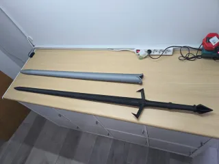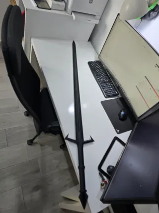 Réplica de la espada Sangre Nocturna del universo Cosmere. Impresa en 3D. Tamaño real, aprox 1,5m. Con su vaina. Está en plástico crudo, puede dejarse así o pintarse. - Diseño inspirado en la saga (Archivo de las tormentas, El aliento de los dioses, Cosmere) - Material: Plástico negro.