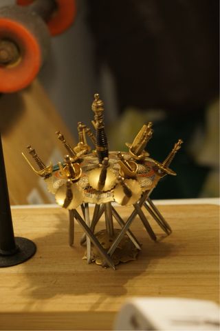 Conjunto de espadas de cóctel vintage, fabricadas en Toledo en los años 70. Pieza decorativa con un diseño único. precio Negociable.😄 - Acabado dorado. - Base ornamental.