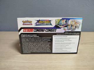 Caja de Pokémon TCG Estadio Combina y Combate: - Colección Espada y Escudo Astros Brillantes - 4 paquetes de mejora Astros Brillantes - 2 barajas completas de 60 cartas - 2 cajas para guardar las barajas - Idioma: español