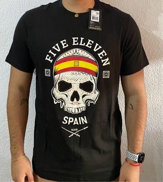 Camiseta negra de manga corta de la marca 5.11 Tactical. - Diseño frontal con calavera y bandera de España. - Estampado FIVE ELEVEN SPAIN y espadas cruzadas. - Cuello redondo. O el diseño Always be Ready en color gris oscuro Talla L