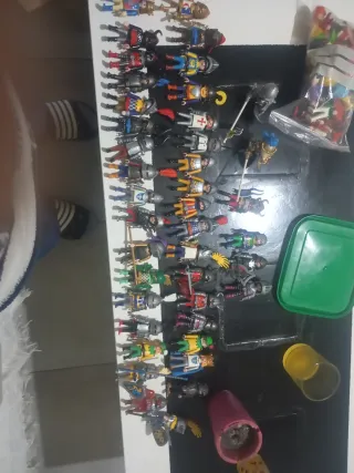 Lote de figuras Playmobil de caballeros y personajes medievales. Ideal para coleccionistas y para recrear batallas históricas. - Figuras variadas de caballeros con armaduras. - Incluye accesorios como espadas y escudos. - Personajes con diferentes vestimentas y cascos.