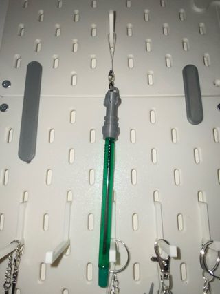 Llavero con diseño inspirado en Star Wars, con detalles de Lego, funciona de tapa de bolígrafo para simular una espada láser funcionando. - Incluye un colgante con forma de sable de luz. - Cadena y anilla metálicas.