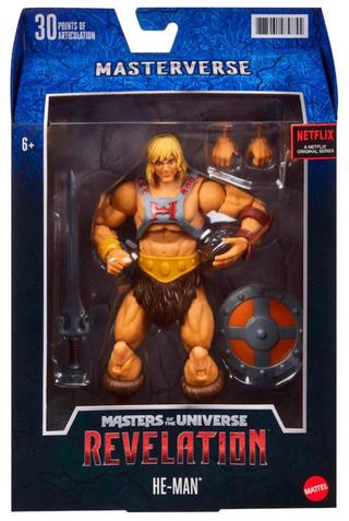 Figura de acción de He-Man de la línea Masterverse Revelation, inspirada en la serie original de Netflix. - 30 puntos de articulación. - Incluye accesorios como manos intercambiables, espada y escudo.
