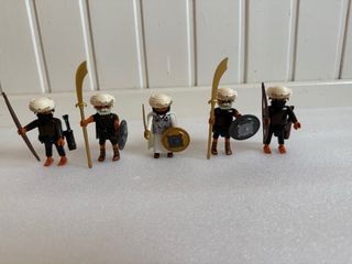 Conjunto de 5 figuras de Playmobil de Sarracenos. - Figuras con turbantes y vestimenta detallada. - Incluye accesorios como armas, escudos y arcos. - Ideal para coleccionistas y recreación histórica. # medieval, cruzados, edad media, templarios, 3666, 3667 #
