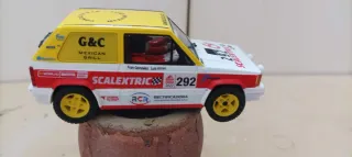 Coche de slot Seat Panda del club Scalextric. - Modelo 292. - Decoración de rally. - Incluye pilotos y detalles de competición.