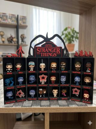 Expositor de diseño exclusivo para mini Funkos de Kinder Joy de Stranger Things. Ideal para coleccionistas. - Recrea el mundo de Stranger Things. - Acabado de calidad con textura única.