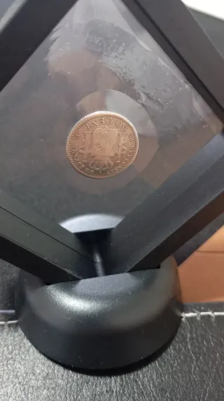 Moneda de plata de 5 pesetas del año 1882, con el busto de Alfonso XII. - Canto con inscripción. - Diseño detallado del retrato. - Año de acuñación: 1882.