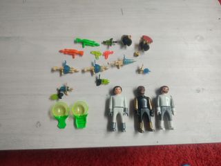 pack de airgamboys de mi colección de niño, todo original de los años 70 u 80. serie espacial, con varias armas. la escafandra tiene uno de los dos tetones para su cierre. la tres figuras con manos, pies, tobilleras y muñequeras. regalo el reloj de submarinista con pegatina original y los dos cascos romanos, uno sin una de las carrilleras. VENDO TAMBIEN LAS PIEZAS POR SEPARADO